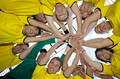 Foto: La mia squadra mentre gioca contro la squadra numero uno in classifica, il nostro portiere riesce a impedire il goal decisivo dell'avversario, giubilo di vittoria alla fine della
